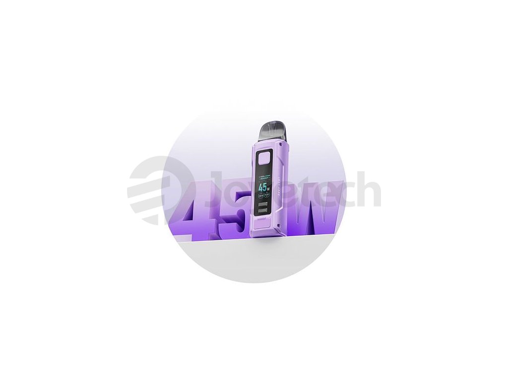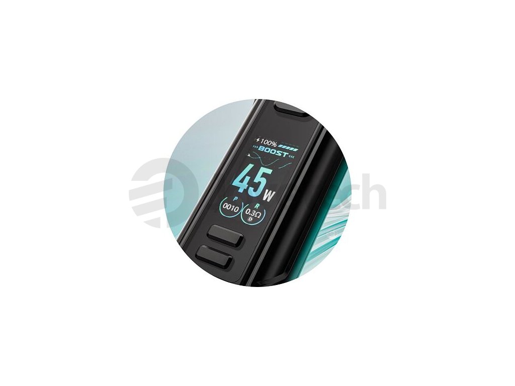 E-cigaretu pohání špičková elektronika umožňující intenzivní vaping s maximálním výkonem až 45 W. Hravě si poradí i se sub-ohmovými Dual Mesh cartridgemi pro tvorbu obrovských hustých mraků. Spolehnout se přitom můžete na inteligentní režim, který automaticky nastaví vhodný výstupní výkon dle odporu připojené cartridge, a zároveň omezí maximální rozsah regulovatelného výkonu, aby nemohlo dojít k jejímu poškození. Pomocí dvou menších tlačítek pod displejem lze výkon jednoduše upravit v daném rozsahu plynule po 1 Wattu.