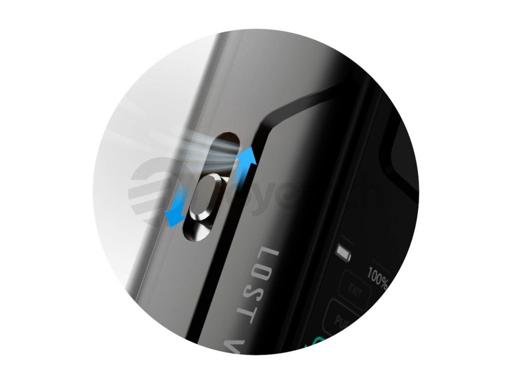 Na boční straně se nachází jednoduchý manuální posuvník Airflow pro nastavení optimální tuhosti potahu podle vašich osobních preferencí. Umožňuje plynulou regulaci množství vzduchu přiváděného ke žhavení, díky čemuž si můžete doladit tuhost potahu a celkový požitek z vapování. Dáváte přednost koncentrovanější páře a plnější chuti? Jednoduchým posunutím omezíte přívod vzduchu, čímž si přesně doladíte výslednou chuť i teplotu páry dle libosti.