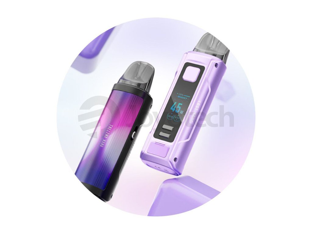E-cigaretu pohání špičková elektronika umožňující intenzivní vaping s maximálním výkonem až 45 W. Hravě si poradí i se sub-ohmovými Dual Mesh cartridgemi pro tvorbu obrovských hustých mraků. Spolehnout se přitom můžete na inteligentní režim, který automaticky nastaví vhodný výstupní výkon dle odporu připojené cartridge, a zároveň omezí maximální rozsah regulovatelného výkonu, aby nemohlo dojít k jejímu poškození. Pomocí dvou menších tlačítek pod displejem lze výkon jednoduše upravit v daném rozsahu plynule po 1 Wattu.