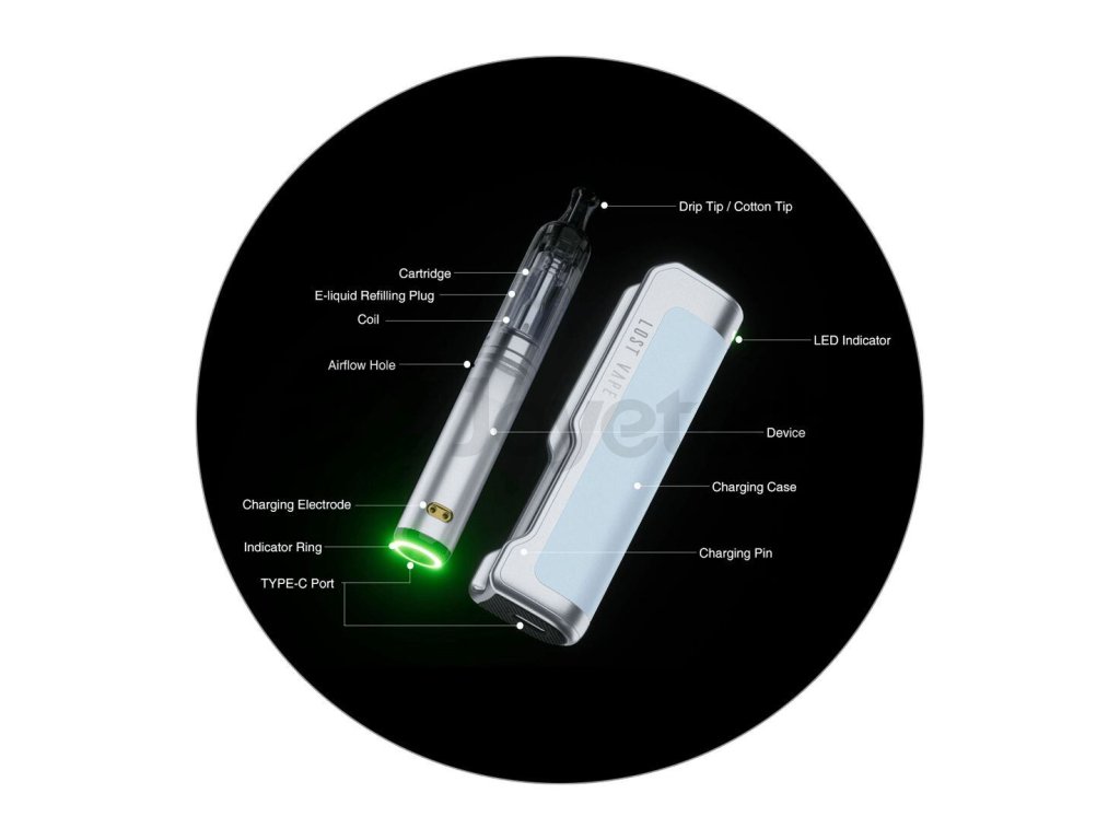 Celá souprava nabídne nejen vymazlený a esteticky dokonalý design, ale také jedinečnou ergonomii pro pohodlné celodenní používání. Samotné trubkové tělo nese tvar oblíbené a prověřené konstrukce, ve vrchní části potom najdete také kuželkový náustek, který příjemně kopíruje tvar úst a každodenní vaping se díky tomu stane opravdovým potěšením.