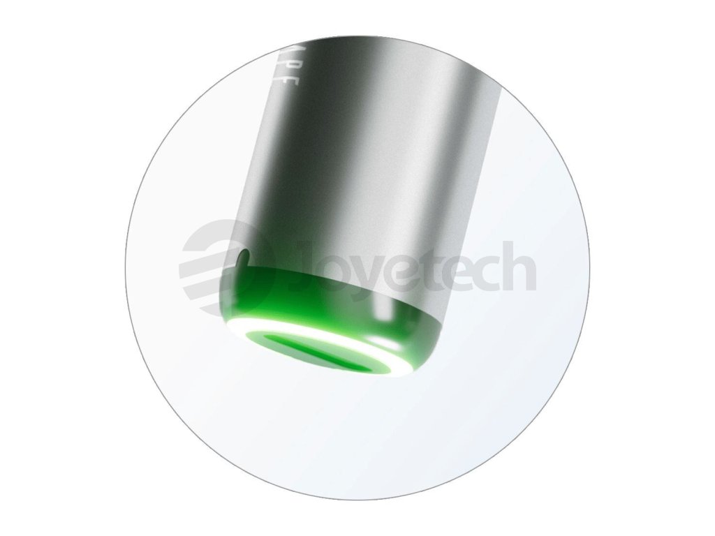 Spodní část e-cigarety Lost Vape Thelema Nexus zdobí barevný LED kroužek, který mění barvu dle aktuální úrovně nabití baterie uvnitř e-cigarety. K dispozici jsou tři rozdílné indikace, díky kterým budete mít neustálý a rychlý přehled o aktuálním stavu baterie a budete mít kontrolu nad tím, zda je nutné baterii dobít.