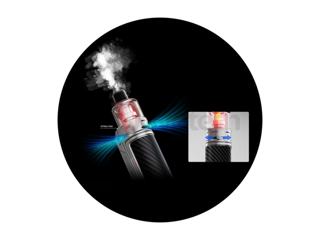 Pokud vám nebude vyhovovat tuhost potahu, můžete si ji kdykoliv upravit pomocí bočního systému airflow. Posouváním páčky ve vrchní části si uzavíráte, nebo otevíráte vzduchový otvor. Kolik vzduchu se dostane ke žhavící hlavě je tak plně ve vaší režii.