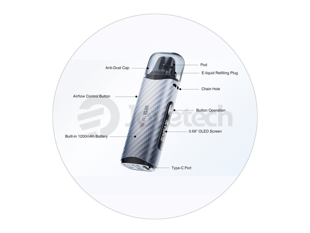 Již druhý pod systém z rodiny Lost Vape Ursa se speciální krytkou náustku se představuje pod názvem Ursa Cap Pro. Jedná se o vylepšenou verzi původního modelu Ursa Cap, který nově nabídne displej s možností regulace výkonu a upgradované cartridge Ursa Pod V3 pro ještě výraznější chuť a ještě delší životnost. K vylepšení došlo po stránce baterie, v těle tak najdete integrovanou baterii s masivní kapacitou 1200 mAh pro dlouhé hodiny nerušeného vapování. Díky krytce náustku máte svou e-cigaretu v neustálém bezpečí před okolními nečistotami a s podporou výstupního výkonu až do 35 W (v závislosti na odporu cartridge) dokáže uspokojit milovníky utaženého i vzdušného vapování.