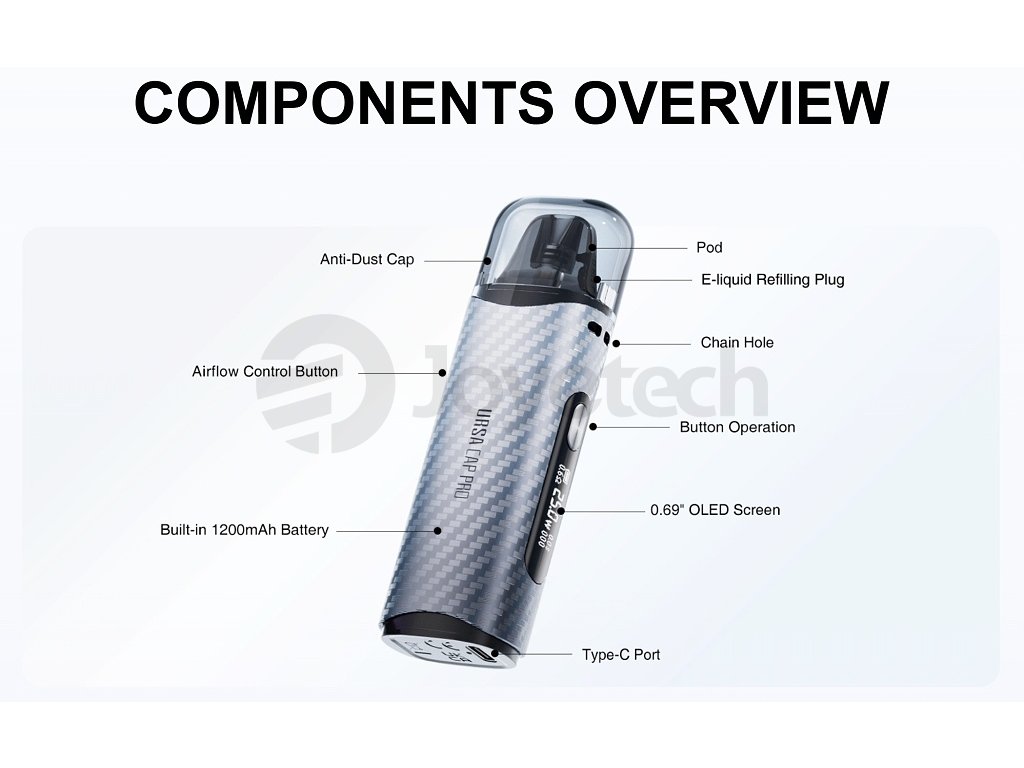 Technologické vybavení Ursa Cap Pro zahrnuje 0,69" OLED displej pro přehledné zobrazení všech důležitých informací o provozu zařízení. Uživatelé ocení flexibilní možnosti aktivace pomocí automatického potahu nebo manuálního žhavícího tlačítka podle osobních preferencí. Regulovatelný posuvník pro nastavení tuhosti potahu umožňuje přizpůsobení vapingového zážitku individuálním požadavkům. Zařízení je plně kompatibilní s Pod Cartridgemi Lost Vape Ursa Nano V1, V2 i nejnovější V3 obsahující meshové žhavící hlavy o odporech 0,6Ω, 0,8Ω a 1,0Ω pro různé styly vapování. Ergonomický náustek s zužujícím se tvarem zajišťuje komfortní potahování, zatímco boční otvor s silikonovým krytem umožňuje snadné a rychlé doplňování e-liquidu. Moderní USB-C konektor podporuje rychlé nabíjení 5V/1A pro minimální prostoje. Praktické příslušenství včetně šňůrky na krk činí z tohoto zařízení perfektního společníka pro aktivní lifestyle vapingových nadšenců, kteří vyžadují spolehlivost, výkon a styl.
