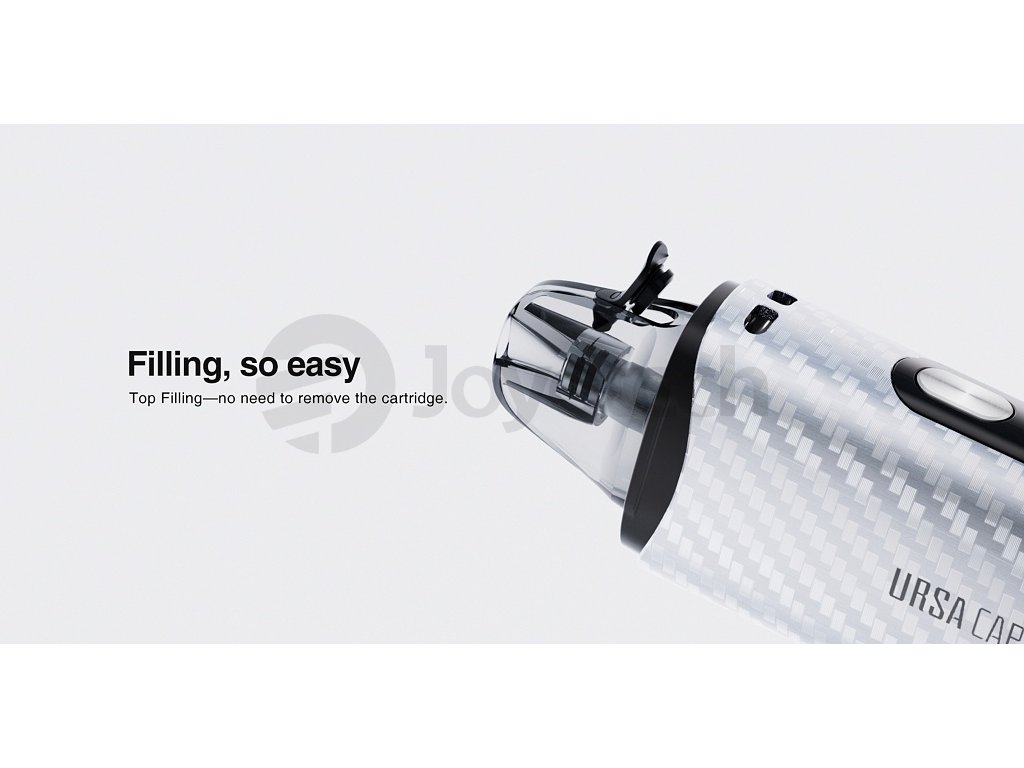 Ursa Nano cartridgePlná kompatibilita s cartridge Ursa Nano V1, V2 i nejnovější V3 s objemem 2,5ml. Ergonomický náustek se zužujícím tvarem zajišťuje komfortní potahování. Boční otvor s silikonovým krytem umožňuje snadné a rychlé doplňování e-liquidu bez nutnosti demontáže. |