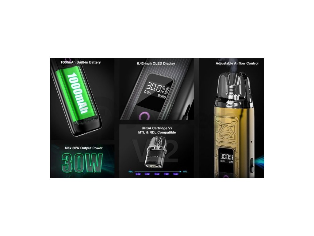 Druhá řada oblíbené elektronické cigarety s POD systémem Ursa Nano Pro 2 od Lost Vape. Kompaktní tělo baterie je vyrobeno z kvalitní zinkové slitiny, obsahuje vestavěný monočlánek o kapacitě 1000mAh a disponuje výkonem až 30W. Postranní airflow je regulován pomocí speciální páčky, která vám umožní si vzduch nastavit přesně podle Vaší chuti. Baterie je vybavena upgradovanými cartrigemi Ursa Nano V2 pro bohatší chuť liquidu s příjemnějším tvarem náustku. Cartridge jsou plně kompatibilní s předešlou řadou. Nabíjení obstarává USB-C port.