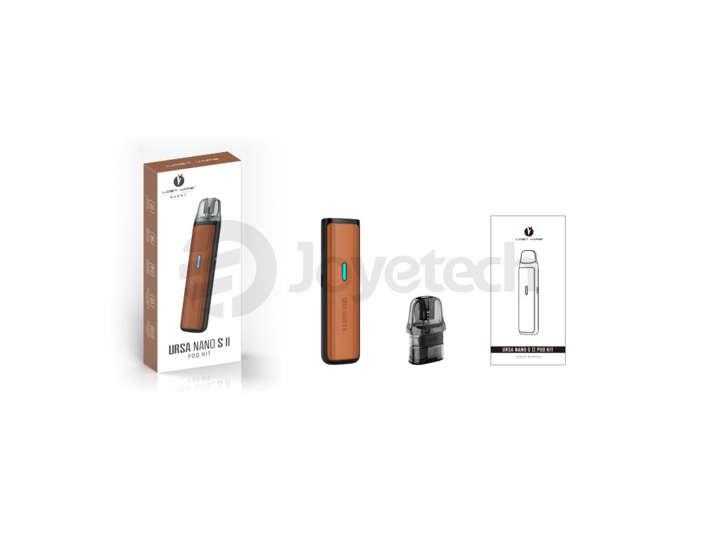 Již druhá generace odlehčeného a kompaktního modelu Ursa Nano S od výrobce Lost Vape láká na kompletně přepracovaný design, exkluzivní vzory a jemnou povrchovou úpravu s panely z umělé kůže. Vapujte elegantně a ve stylu a vychutnávejte si výkonný vaping s automatickým nastavením výkonu až do 30W a kompatibilitou s cartridgemi Lost Vape Ursa Pod V2 pro tu nejlepší chuť. Čerpejte z výhod vestavěné baterie s kapacitou 1000mAh a užívejte si bezstarostný vaping díky přehledné indikační diodě, systému manuální regulace vzduchu a funkci automatického spínání potahu. Lost Vape Ursa Nano S 2 Pod Kit je důsledným upgradem ve všech směrech.
