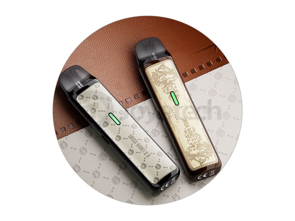 Již druhá generace odlehčeného a kompaktního modelu Ursa Nano S od výrobce Lost Vape láká na kompletně přepracovaný design, exkluzivní vzory a jemnou povrchovou úpravu s panely z umělé kůže. Vapujte elegantně a ve stylu a vychutnávejte si výkonný vaping s automatickým nastavením výkonu až do 30W a kompatibilitou s cartridgemi Lost Vape Ursa Pod V2 pro tu nejlepší chuť. Čerpejte z výhod vestavěné baterie s kapacitou 1000mAh a užívejte si bezstarostný vaping díky přehledné indikační diodě, systému manuální regulace vzduchu a funkci automatického spínání potahu. Lost Vape Ursa Nano S 2 Pod Kit je důsledným upgradem ve všech směrech.