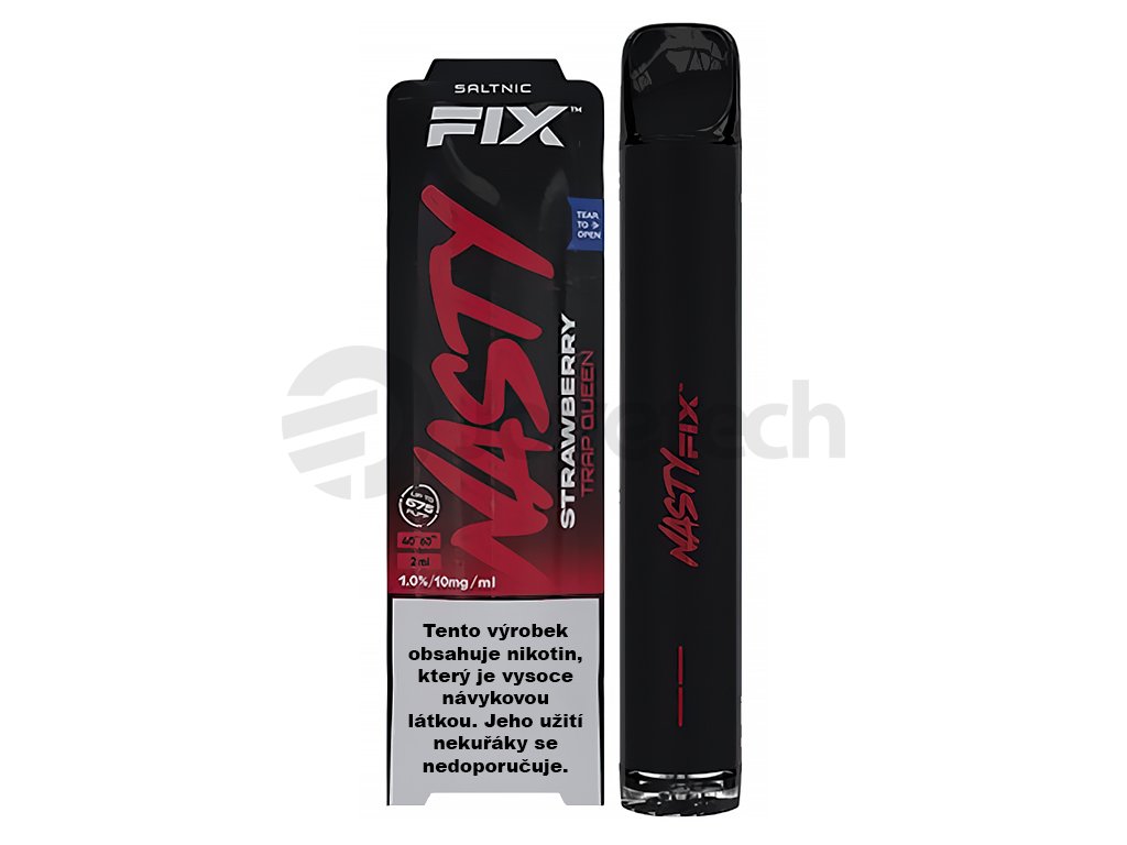 Prvotřídní chuť čerstvě natrhaných zralých jahod, která se snoubí s jemnou mátovou dochutí. Nasty Juice Air Fix je jednorázová elektronická cigareta obsahující 2 ml předplněného e-liquidu uvedené příchutě. Obsahuje nikotinovou sůl, která se rychleji vstřebává do těla a není tak nutné časté potahovaní, jako je tomu klasických liquidů. Cigareta je napájena vestavěnou baterií o kapacitě 700 mAh, se kterou dosáhnete až 675 potažení. Spodní část zařízení disponuje regulací přívodu vzduchu pro optimální nastavení kouřivosti. Jde o ideální řešení pro kuřáky, kteří potřebují jednorázově překlenout pobyt v nekuřáckém prostředí. Obsah nikotinu 10mg/1ml.