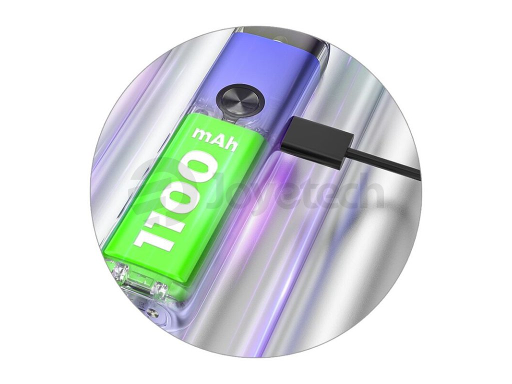 V těle e-cigarety se nachází integrovaná baterie s obrovskou kapacitou 1100 mAh pro dlouhé hodiny nerušeného a intenzivního vapování. V případě nutnosti budete moci baterii kdykoliv dobít prostřednictvím rychlého portu USB-C. E-cigareta Feelin 2 zvládne dobíjení proudem až 2A.