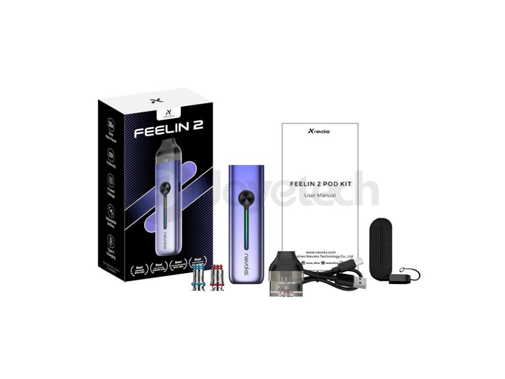 Nevoks Feelin 2 Pod Kit je špičkový pod systém s nádherným designovým zpracováním, podporou hlav z platformy Nevoks SPL 10 a několika zajímavými funkcemi, díky čemuž dokáže oslovit drtivou většinu vaperů. Konstrukce zařízení z hliníkové slitiny přináší nízkou hmotnost 45 g a zaoblené hrany s praktickými rozměry celého těla 105 x 25 x 15 mm. Díky svému tvaru se perfektně drží v dlani a používání si tak budete doslova užívat. Její tělo je poháněno integrovanou baterií se solidní kapacitou 1100 mAh, která hravě zvládne také intenzivnější používání a vyšší výkon. Na předním panelu se nachází přehledný LED indikační pásek, který vás bude neustále informovat o aktuálním stavu baterie a zároveň dodá e-cigaretě futuristické vzezření. Baterii je možné dobíjet prostřednictvím portu USB-C s podporou nabíjení až 2A.