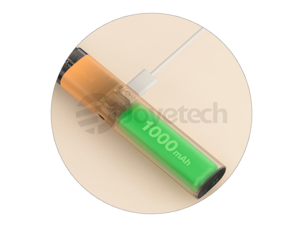 Jádro e-cigarety Feelin AR je poháněno integrovanou baterií s výbornou kapacitou 1000 mAh. Hravě tak zvládne intenzivní mnohahodinový provoz bez potřeby dalšího nabíjení. V případě nutnosti pak stačí jednoduše připojit USB-C kabel a baterii si můžete kdykoliv opětovně dobít. Podporuje nabíjení proudem 1A.