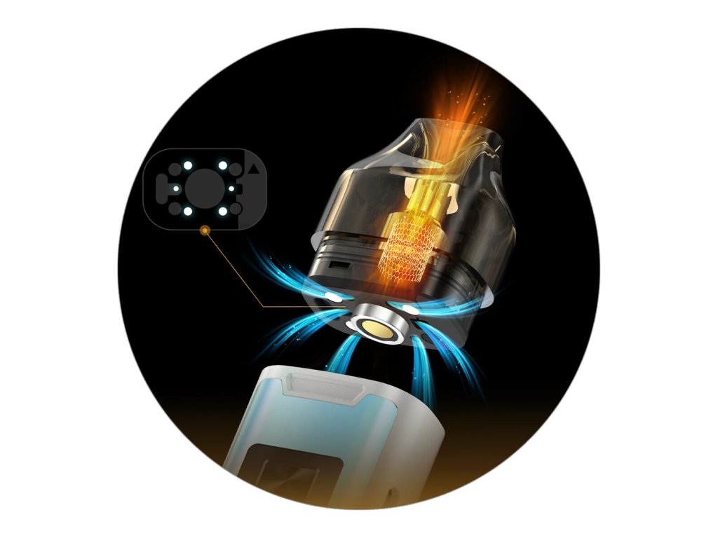 Pro maximální pohodlí při každém potahu najdete na těle zařízení systém manuální regulace airflow. Posouváním páčky tak snadno ovlivníte výslednou tuhost potahu a můžete si tak užívat vaping přesně podle svých představ. Díky dlouhé dráze airflow regulace si snadno upravíte vzduch pro všechny formy potahu od DL až po MTL.