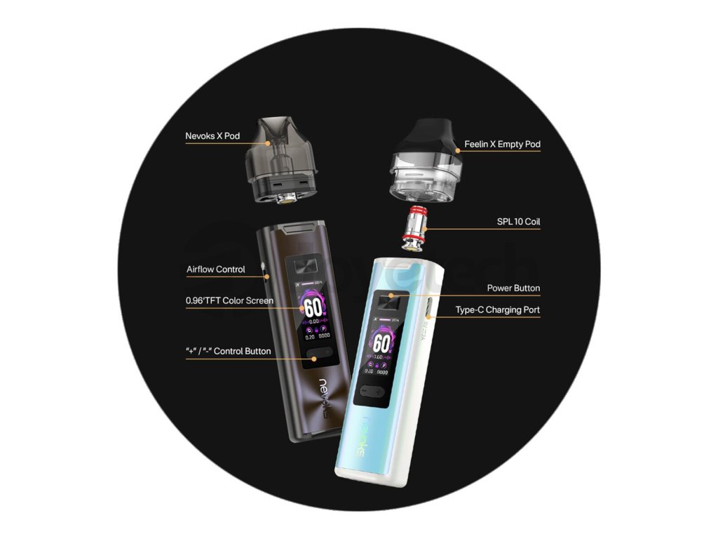 Se strhujícím výkonem až 60W a podporou nových cartridgí s integrovanou hlavou pro DL potah představuje nový Nevoks Feelin XR Pro Pod Kit další milník v sérii oblíbených pod systémů Feelin. Model s krásně zpracovanou kovovou konstrukcí je vybaven integrovanou baterií o kapacitě 2500mAh a celobarevným velkým TFT displejem pro uspokojující požitek z vapování. Jako bonus přináší také kompatibilitu s prázdnými cartridgemi Feelin X a žhavícími hlavami SPL 10 pro ještě větší variabilitu při výběru vhodné součásti a stylu potahu. Bohatě vybavený pod systém potěší milovníky všech stylů vapování v jednom jediném těle.