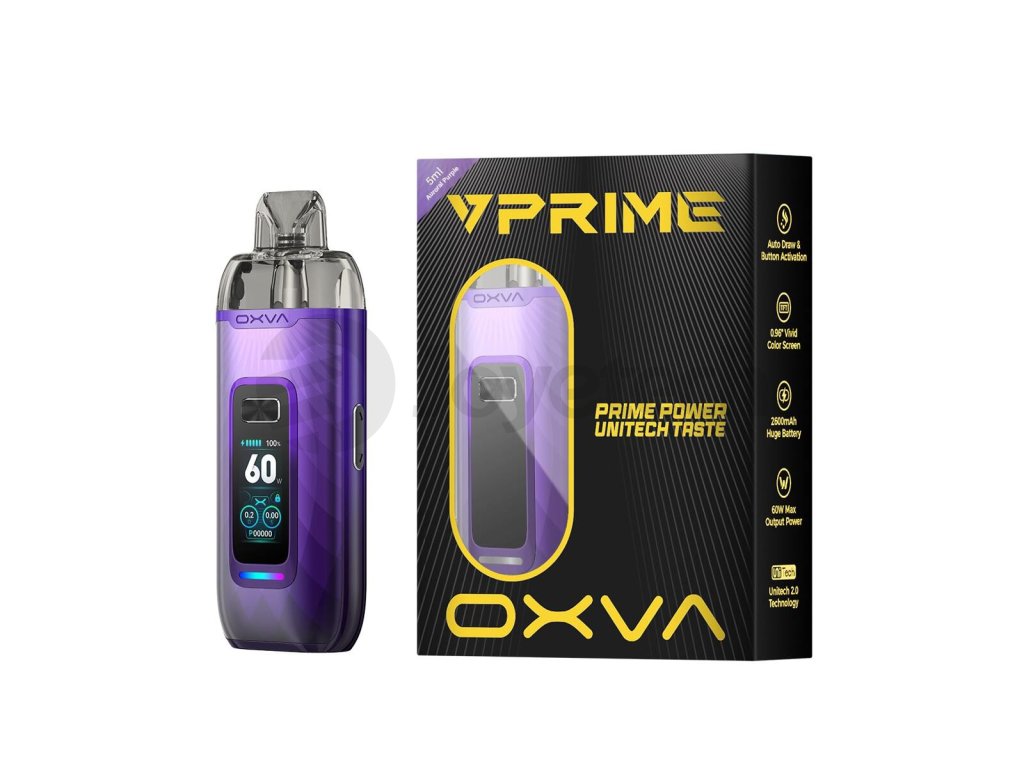 Revoluční pod systém OXVA Vprime Pod Kit je první DL e-cigaretou s podporou automatického spínání potahu s mohutným celobarevným displejem pro dechberoucí a pohlcující vizuální požitek z vapování a uživatelsky přívětivé nastavení. Díky integrované baterii o kapacitě 2600mAh si zvládne poradit s výstupním výkonem až do 60W a s novými cartridgemi Vprime s technologií Unitech 2.0 se můžete těšit na výjimečnou chuť při každém potahu a možnost vapování všemi oblíbenými styly - DL, RDL a MTL. Špičkový pod systém se představuje v krásně zpracovaném kovovém těle, kterému nechybí styl, ani jedinečnost. Promyšlené uživatelské rozhraní s důrazem na praktičnost vás ohromí už při prvních minutách používání. Prožijte nepopsatelný zážitek při vapování i vy.