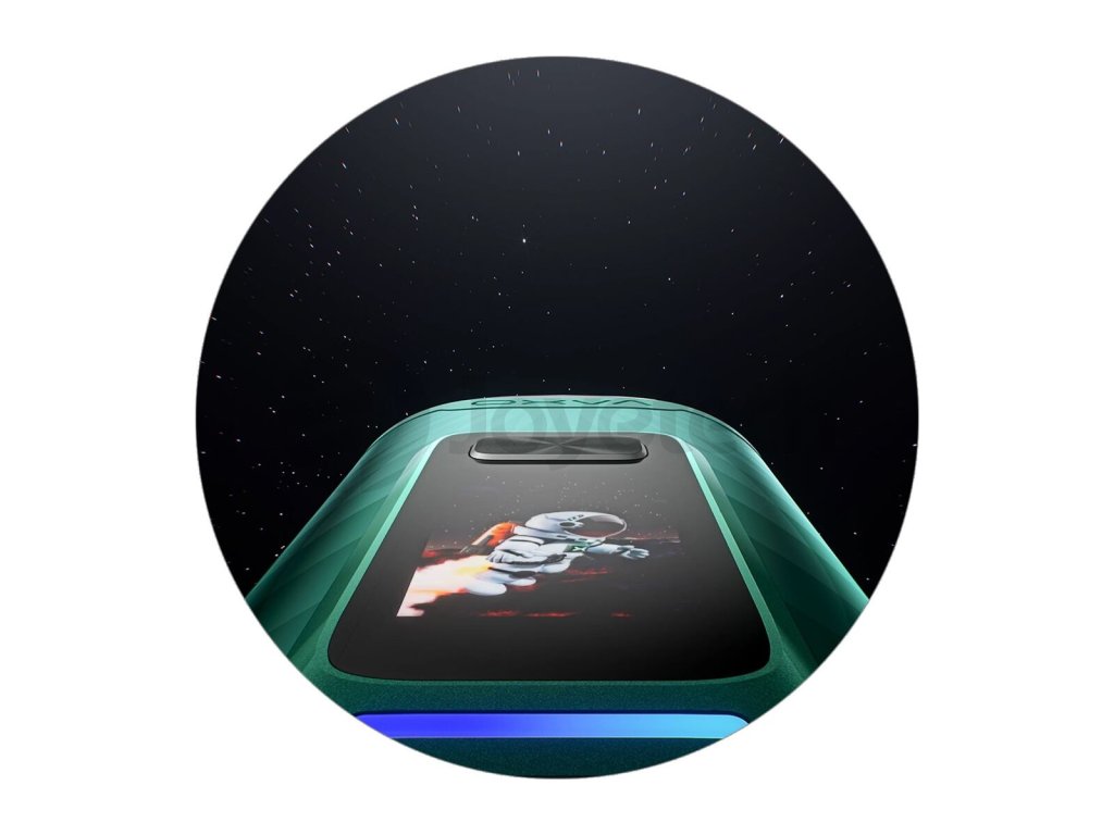 Přední panel zdobí mohutný celobarevný displej, který vás bude během používání neustále informovat o všech parametrech a aktuálním stavu baterie. Všechny položky jsou krásně čitelné a jedním pohledem si vždy snadno ověříte, jaký máte nastavený výkon, jaký je odpor cartridge, kolik máte odvapováno potahů nebo zda není e-cigareta uzamčená. Vše potom doplní krásné barevné animace zobrazené na displeji během potahu pro vizuální požitek při vapování.