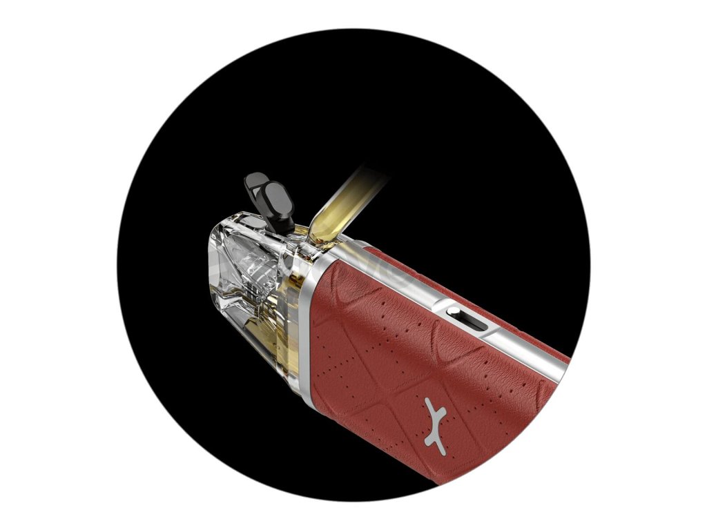 OXVA Xlim GO se pyšní krásně zpracovaným tělem s tradiční podlouhlou konstrukcí, kterou máte u série Xlim v oblibě. Novinkou je jemná textura povrchu díky lepené kůži, kterou najdete na obou panelech zařízení. E-cigareta se příjemně drží v dlani a lepená kůže dodává celému modelu luxusní vzezření.
