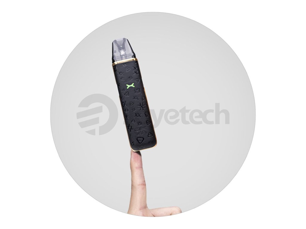 OXVA Xlim GO se pyšní krásně zpracovaným tělem s tradiční podlouhlou konstrukcí, kterou máte u série Xlim v oblibě. Novinkou je jemná textura povrchu díky lepené kůži, kterou najdete na obou panelech zařízení. E-cigareta se příjemně drží v dlani a lepená kůže dodává celému modelu luxusní vzezření.