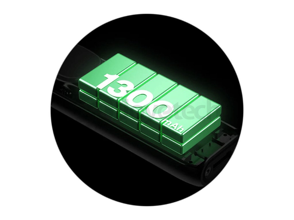 Tělo je poháněno integrovanou baterií o kapacitě 1300 mAh, která zajistí hladký provoz a dlouhou výdrž. Díky čipsetu DNA se můžete těšit také na perfektní power management a ještě delší výdrž proti konvenčním pod systémům. Samozřejmostí je potom také podpora rychlého dobíjení s moderním USB-C rozhraním a podporovanými parametry adaptéru 5V / 2A.