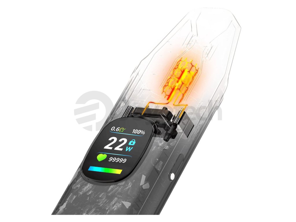 Tělo je poháněno integrovanou baterií o kapacitě 1300 mAh, která zajistí hladký provoz a dlouhou výdrž. Díky čipsetu DNA se můžete těšit také na perfektní power management a ještě delší výdrž proti konvenčním pod systémům. Samozřejmostí je potom také podpora rychlého dobíjení s moderním USB-C rozhraním a podporovanými parametry adaptéru 5V / 2A.