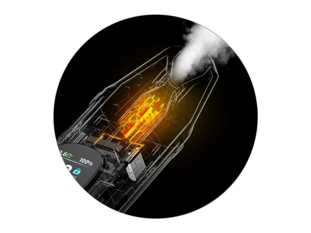 Proslulá a vysoce efektivní kontrola teploty při žhavení u čipsetu DNA se postará o bezpečný provoz bez vzniku dry hitu. Pokud vám uvnitř cartridge dojde e-liquid, žhavení se jednoduše pozastaví a vyskočí na vás chybová hláška, abyste doplnili e-liquid. Nemusíte se tak obávat zkreslení chuti a nepříjemného zápachu při potažení prázdné cartridge. Výrobce čipu DNA Evolv si na teplotní kontrole velice zakládá a vypiplal ji k opravdové dokonalosti.