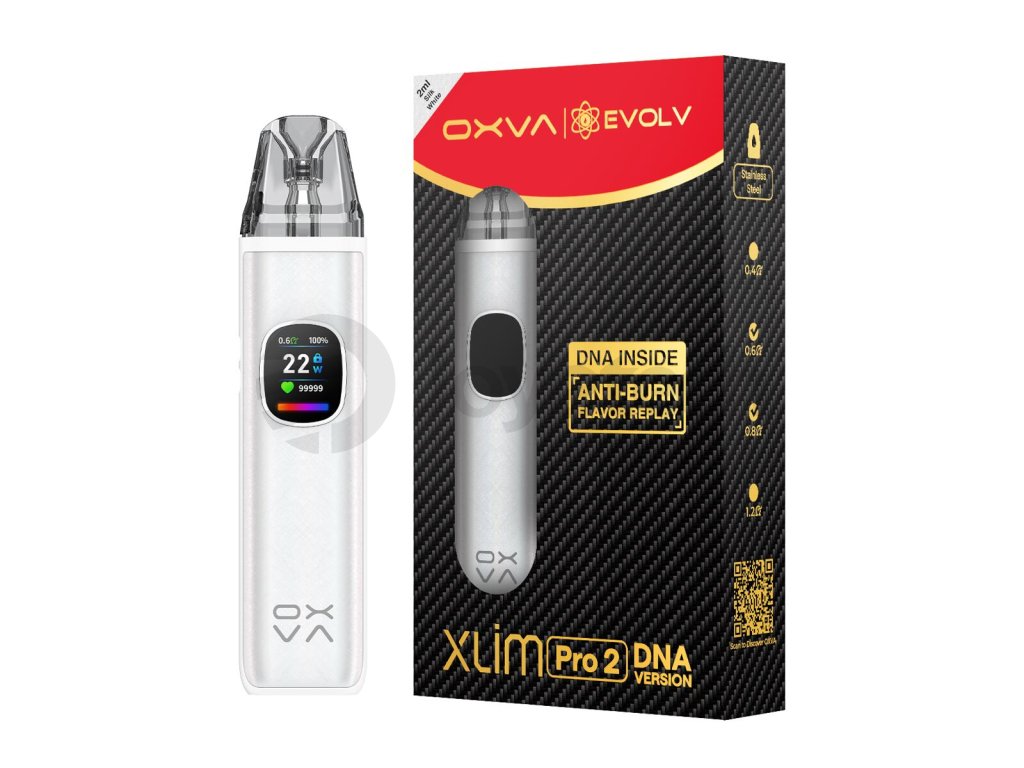 OXVA Xlim Pro 2 DNA Pod Kit je vůbec prvním pod systémem na světě osazeným pokročilým čipsetem DNA známým zejména z komplexnějších box modů a jiných typů zařízení. Spolupráce amerického výrobce Evolv a světoznámého výrobce vapingového hardwaru OXVA přináší do světa vapingu svěží vítr v podobě promyšleného, komplexního a pokročilého zařízení, jež si však zachovává tradiční skladnou a kompaktní konstrukci pod systému. Čipset Evolv DNA má neuvěřitelně rychlou odezvu a zajišťuje jen ty nejlepší výsledky při vapování ve spojení se stabilitou a dlouhou výdrží baterie a bohatými možnostmi vlastní modifikace prostřednictvím doplňkového softwaru EScribe. Vapujte jako profesionál s tímhle jedinečným kouskem.