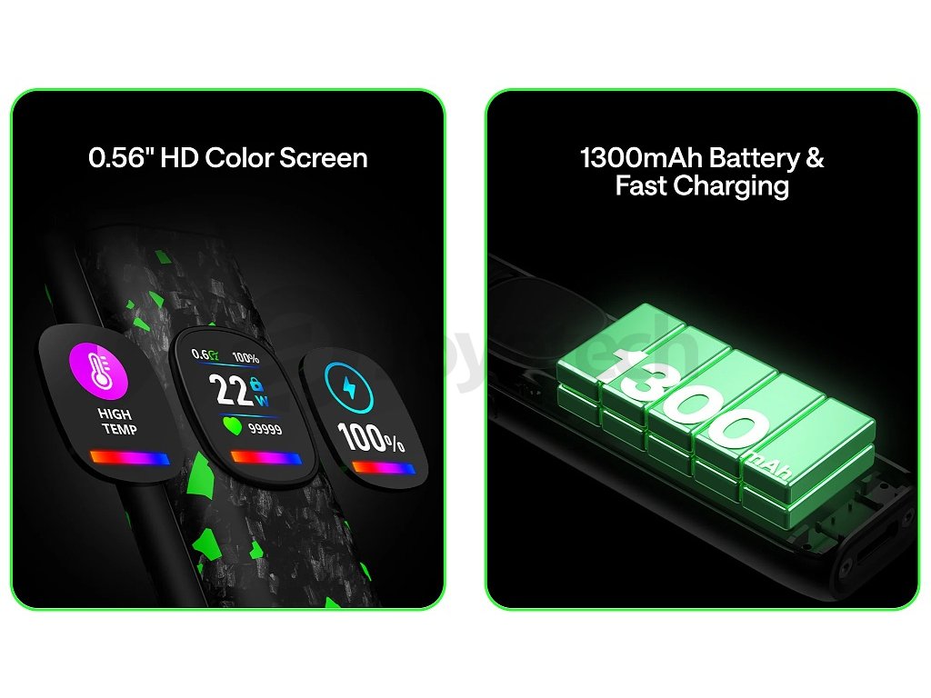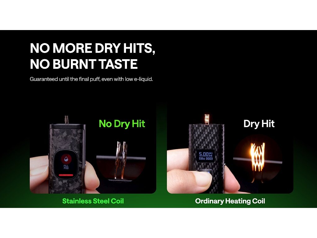 Oceněný designLuxusní konstrukce z kombinace zinkové slitiny, karbonu/IML a PCTG materiálů s elegantními barevnými variantami včetně luminiscenčního karbonu. Oceněno prestižní Muse Design Awards za nejkrásnější elektronickou cigaretu roku 2025 díky dokonalému spojení funkčnosti a estetiky. |