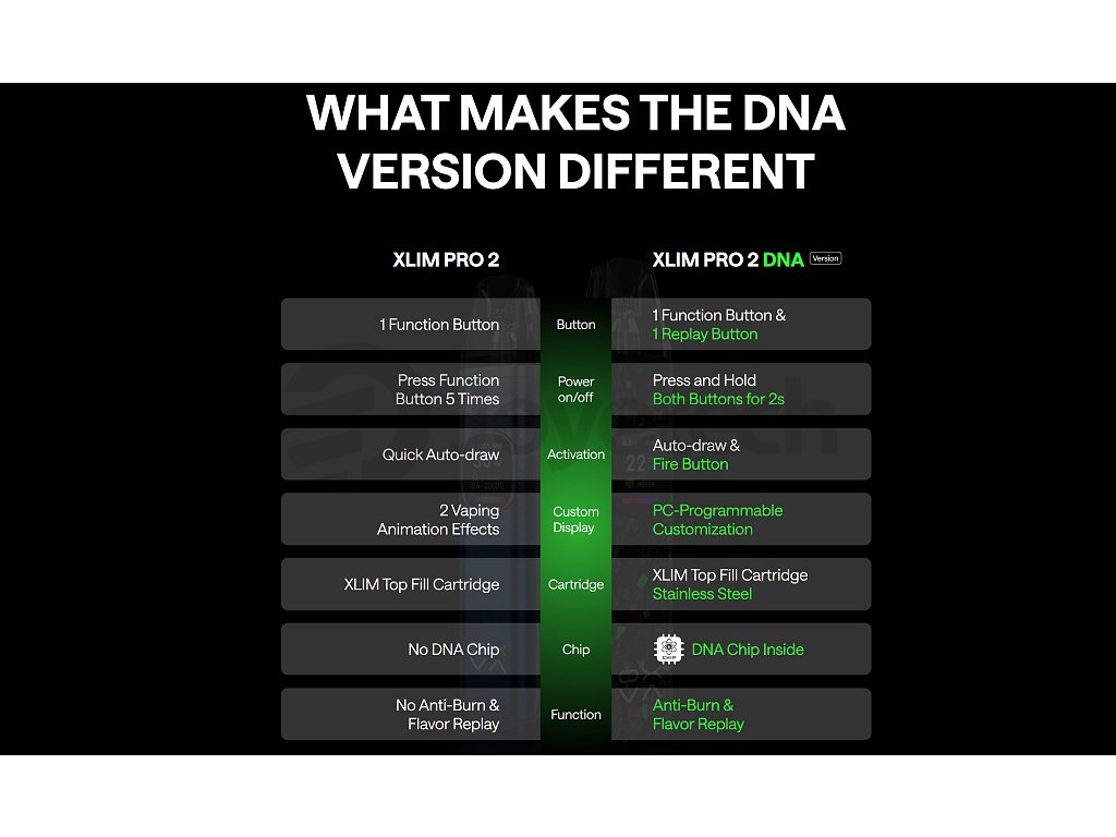 OXVA Xlim Pro 2 DNA Pod Kit představuje revoluční spojení špičkové technologie Evolv DNA čipsetu s oceněným designem kompaktní elektronické cigarety, což z ní činí první pod systém na světě s pokročilým DNA čipem. Tato prémiová elektronická cigareta nabízí precizní teplotní kontrolu a funkci Replay pro přesnou reprodukci chuti při každém potahu, zatímco HD barevný displej s vysokou jemností pixelů poskytuje kompletní přehled o všech parametrech vapování. S integrovanou baterií 1300 mAh a rychlým USB-C nabíjením 5V/2A zajišťuje dlouhodobý a spolehlivý provoz, který kombinuje výkon 5-30W s podporou odporu 0.2-3.0Ω pro maximální variabilitu. Model podporuje jak automatické, tak manuální spínání potahu a nabízí dvě metody ovládání podle preferencí uživatele. Vynikající power management díky DNA čipsetu prodlužuje výdrž baterie oproti konvenčním pod systémům, zatímco pokročilá teplotní ochrana zabraňuje vzniku dry hitů při prázdné cartridgi. Personalizace prostřednictvím softwaru EScribe od výrobce Evolv umožňuje úpravu zařízení do nejmenších detailů a odhalení pokročilých funkcí elektronické cigarety.