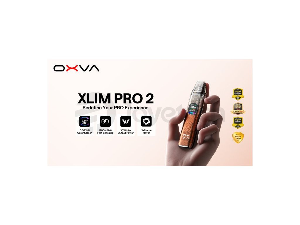 Elektronická cigareta OXVA Xlim Pro byla vyhlášena nejoblíbenějším POD zařízením mezi vapery za období 2023 a 2024. Nyní přichází výrobce s druhou řadou, která si pro Vás přichystala mnoho novinek. Elegantní a čistý designe těla baterie zdobí 0,56 palcový barevný Ultra-HD displej, který poskytuje vynikající přehled o nastavení všech hodnot. Vestavěný monočlánek nabízí vyšší kapacitu baterie 1300mAh, USB-C port s 2A nabíjením a výkonem až 30W. Na boční straně baterie je umístěno regulační tlačítko pro přívod vzduchu, díky kterému si jednoduše nastavíte RDL nebo MTL režim vapování. V obsahu balení najdete cartridge Xlim V3 s horním plněním - není potřeba vyndavat cartridge z těla baterie při plnění liquidem. Cartridge V3 jsou plně kompatibilní s verzí V2.