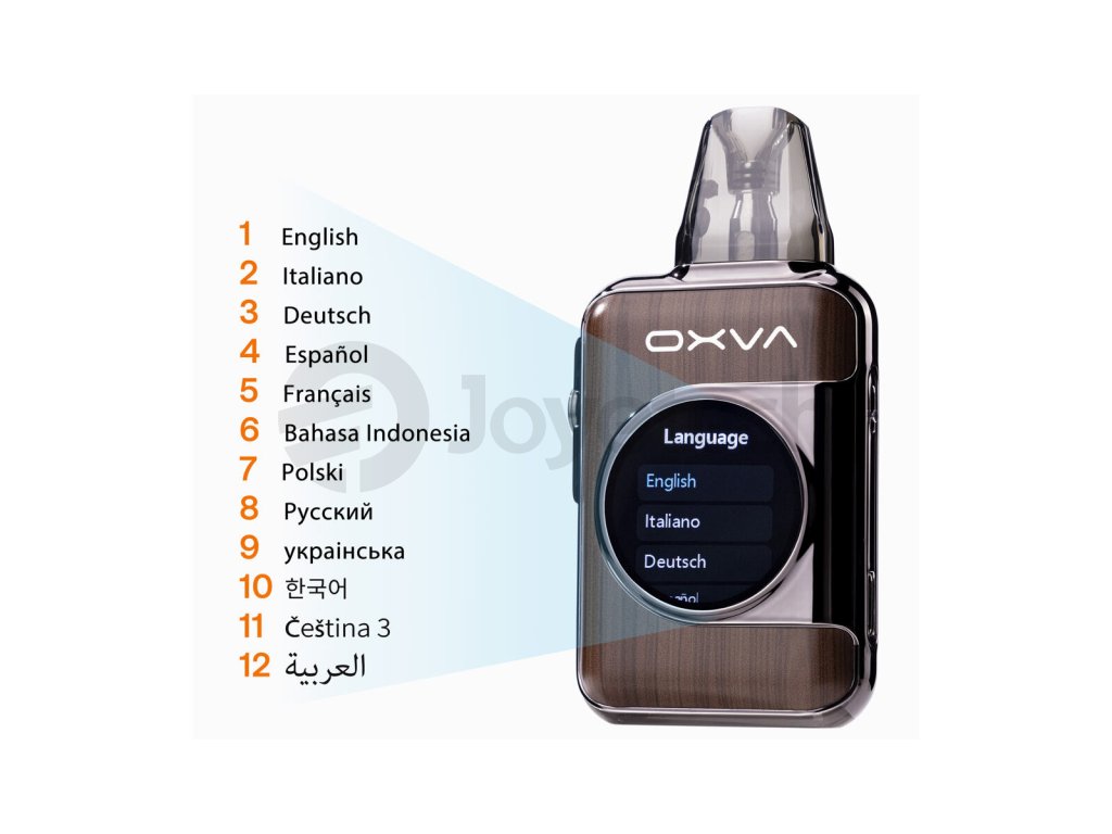 Zcela unikátním prvkem e-cigarety je nastavení v českém jazyce. V nabídce modelu najdete hned dvanáct jazyků, sami si tak zvolíte, jaký vám bude vyhovovat nejvíce. Pokud se nevyznáte v originálním anglickém menu, jednoduše si přepnete celou e-cigaretu do českého jazyka a můžete si tak usnadnit každodenní používání, nastavení a celkový provoz.