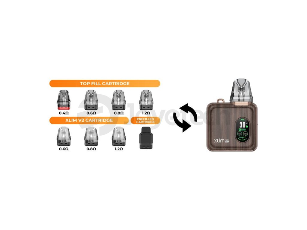 OXVA Xlim SQ Pro Pod je kompatibilní s kompletní platformou cartridgí Xlim Pod. Mezi zařízeními ze stejné série si tak můžete cartridge libovolně prohazovat a používat cartridge, kterou budete mít zrovna naplněnou. V základním balení potom najdete dvě cartridge ze série Xlim V3 Top Fill. První nabídne odpor 0,6 ohm a je vhodná pro volnější MTL a utažené RDL vapování. Druhá disponuje odporem 0,8 ohm a je optimální volbou pro MTL a užití s nikotinovou solí.
