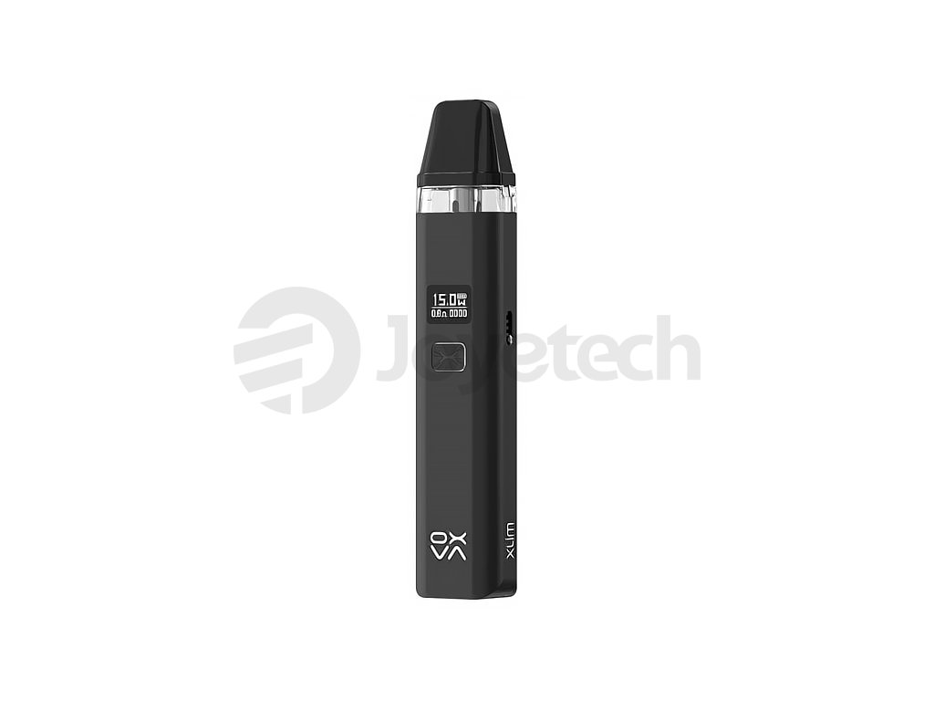 Kompaktní Pod elektronická cigareta s možností regulace výkonu, integrovaná baterie o kapacitě 900mAh, inovativní AirFlow, OLED displej. Výkon 5 - 25W, kapacita Cartridge 2ml, podporovaný odpor 0,6 - 1,2 ohm, rozměry 111 x 24 x 14 mm, USB-C nabíjení, 2x Cartridge OXVA Xlim Pod 0,8 a 1,2ohm v Setu. Barva Černá.