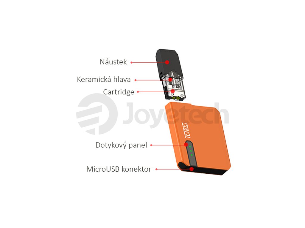 Ve vrchní části baterie je umístěna cartridge se stylovým náustkem a objemem 0,5 ml. Uvnitř této cartridge se nachází integrované žhavící tělísko VPOCERA™ Zisha obalené keramickou vrstvou. Toto patentované tělísko dodává mimořádně jemnou chuť páry a skvěle prokresluje chuť každého e-liquidu. Díky odporu 1,5 ohm navíc můžete bez obtíží používat také náplně s nikotinovou solí, nebo řadu e-liquidů s vyšší koncentrací nikotinu.