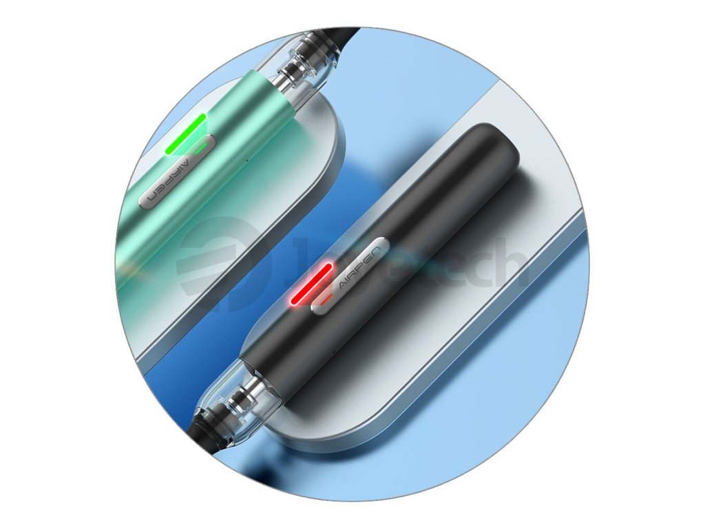 V těle e-cigarety Airpen na vás čeká integrovaná baterie se skvělou výdrží a solidní kapacitou. Ta činí krásných 1100mAh a zajistí hladký mnohahodinový intenzivní provoz bez nutnosti častého nabíjení. V případě potřeby si pak můžete baterii kdykoliv opětovně dobít prostřednictvím moderního nabíjecího portu USB-C s podporou 1A nabíjení.