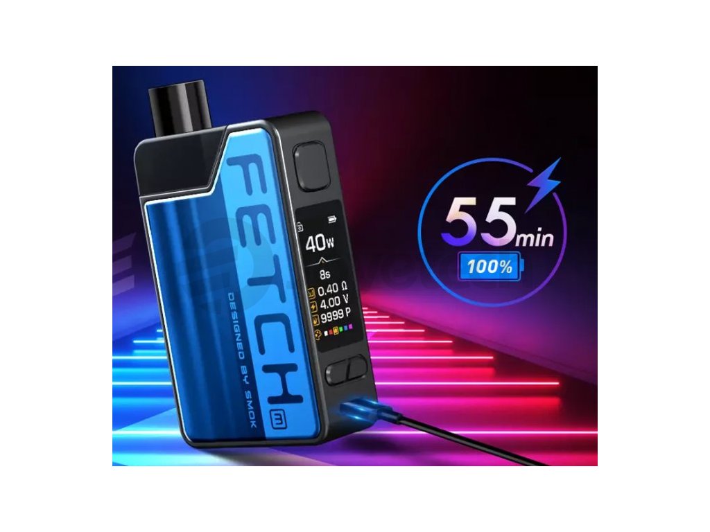 Není určeno pro náplně obsahující nikotin! Smoktech FETCH Mini je inovativní grip s POD systémem, integrovanou baterií o kapacitě 1200mAh a nastavitelným výkonem až 40W. Obě strany gripu jsou vyrobeny z kvalitního PCTG materiálu, který se používá především v potravinářství. Přední panel zdobí 0,96 palcový displej, který umožňuje jednoduché nastavení hodnot a zobrazuje všechny potřebné informace. Nabíjení zajišťuje micro USB vstup s dobou nabíjení pouhých 55-ti minut. FETCH nabízí dva typy cartridgí o objemu 3,7ml pro žhavicí hlavy RPM a Nord. V základním balení budete mít na výběr dvě žhavicí hlavy, a to masivního výrobce páry RPM Mesh o odporu 0,4ohm a Nord Regular o odporu 0,6ohm.