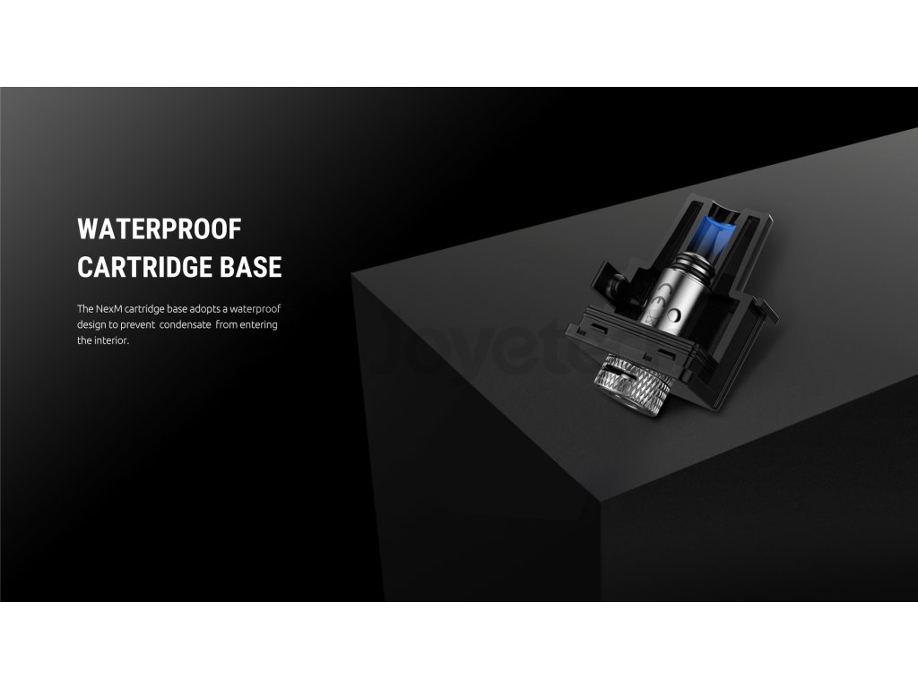Pro Vaší oblíbenou náplň je pod Grip nexM osazen lehce odnímatelnou Cartridgí s bočním plněním a celkovou kapacitou 2ml, příjemnou ergonomií náustku a samozřejmě možností regulace přívodu vzduchu (Airflow), která se nachází na spodní základně pod žhavící hlavou. Celý tank je vodotěsný a nemusíte tak mít strach, že Vám může vzniklý kondenzát vniknout do samotného zařízení.
