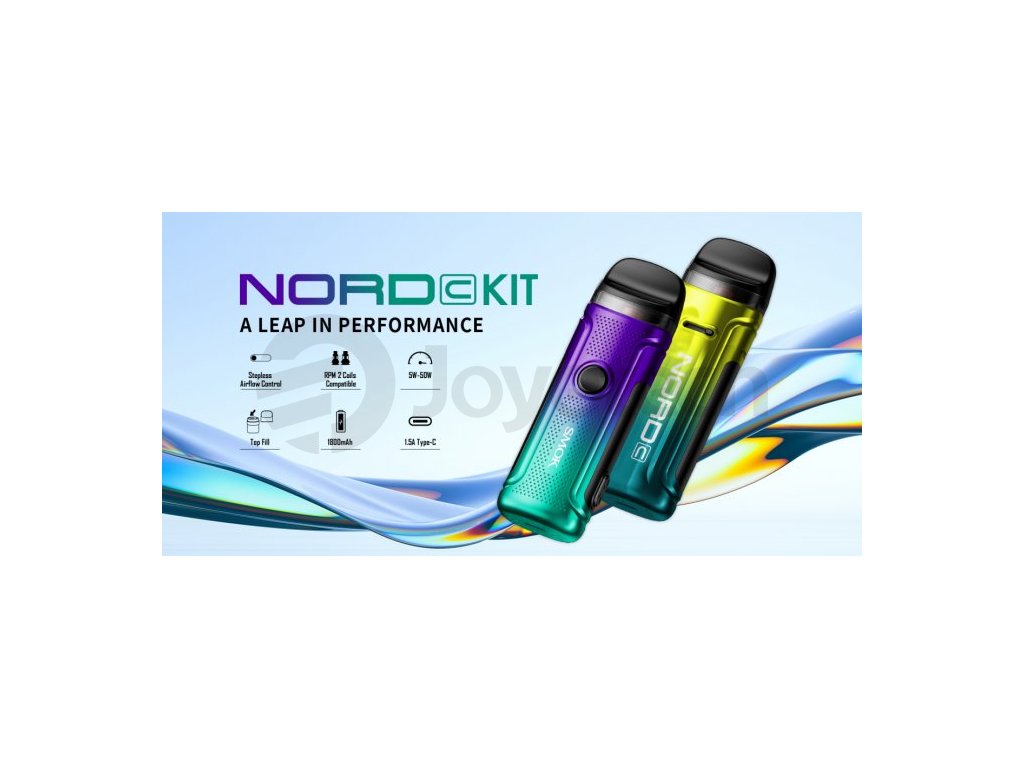 Není určeno pro náplně obsahující nikotin! Smoktech si pro Vás připravil zbrusu nový model elektronické cigarety NORD C, který vás na první pohled zaujme svým futuristickým zpracováním. S tímto ,,parťákem´´ si na cestě vapingu užijete nepřekonatelný DL zážitek za doprovodu té nejlepší chuti liquidu. Kompaktní tělo baterie přináší vestavěný monočlánek o kapacitě 1800mAh, nastavitelný výkon až 50W, inovativní regulaci přívodu vzduchu AFC a rychlé nabíjení pomocí USB-C portu. Na boční straně je umístěn OLED displej, který umožňuje jednoduché nastavení hodnot a zobrazuje všechny potřebné informace. Mezi jeho další přednosti patří ochrana proti zkratu a přehřátí či 8-mi vteřinová ochrana žhavení. Cartridge Nord C o objemu 4,5ml spolupracuje se žhavícími hlavami RPM2.