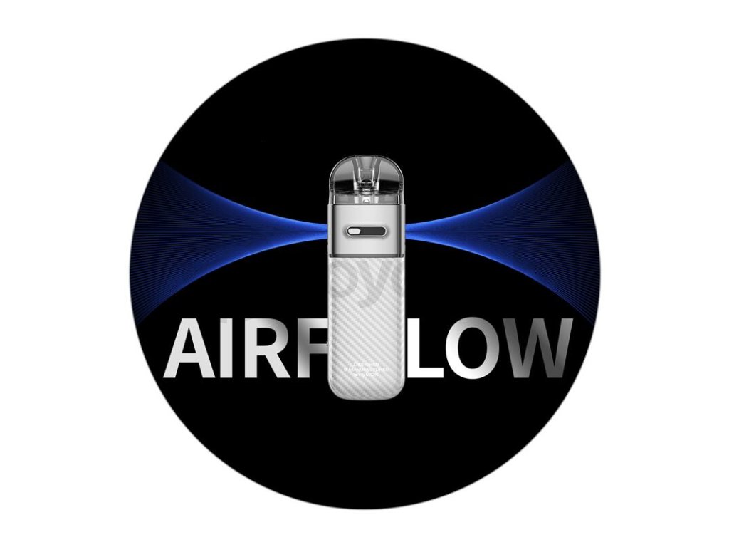 V boční části se nachází otvory pro přívod vzduchu ke cartridgi. Kolik vzduchu se do zařízení dostane si budete moci pohodlně upravit podle potřeby. V zadní části e-cigarety se nachází manuální posuvník pro regulaci přívodu vzduchu. Ať už preferujete volnější, nebo utaženější potah, vše si nastavíte během pár vteřin.