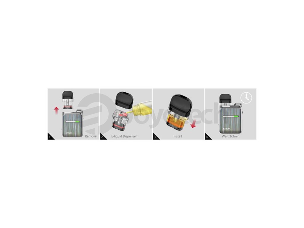 SMOK Novo Master Box je kompatibilní s cartridgemi ze série SMOK Novo, jmenovitě potom s cartridgemi řad Novo, Novo 2 a Novo 2X. V základním balení nabídne zařízení hned dva pody z této platformy, obě cartridge nabídnou mesh pletivo v jádru a horní plnění. První z nich disponuje odporem 0,6 ohm, druhá nabídne odpor 0,8 ohm. Obě jsou určeny ke klasickému šlukování.