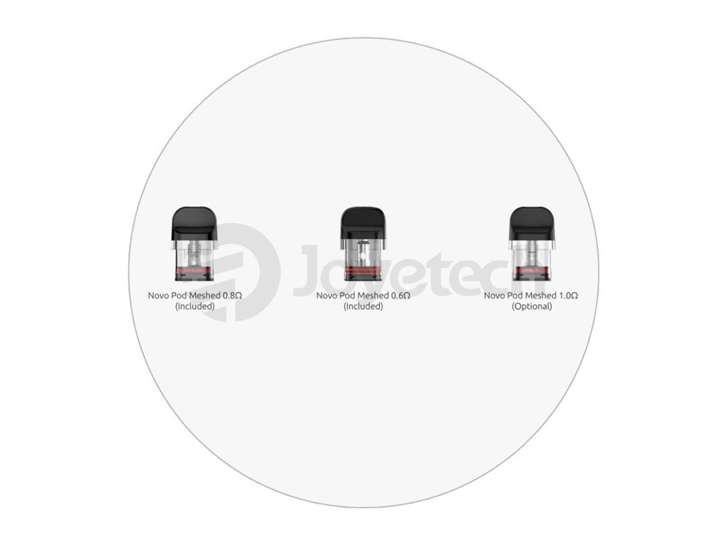 Elektronická cigareta SMOK Novo Master Pod je kompatibilní s obrovským množstvím vyměnitelných cartridgí z platforem Novo, Novo 2 a Novo 2X. V základním balení na vás čekají dvě cartridge SMOK Novo Meshed Pod s odpory integrované hlavy 0,6 ohm a 0,8 ohm. Obě tyto cartridge nabídnou pohodlné horní plnění s vylamovacím náustkem. Samostatně si můžete pořídit také cartridge s vyššími odpory a bočním plněním.