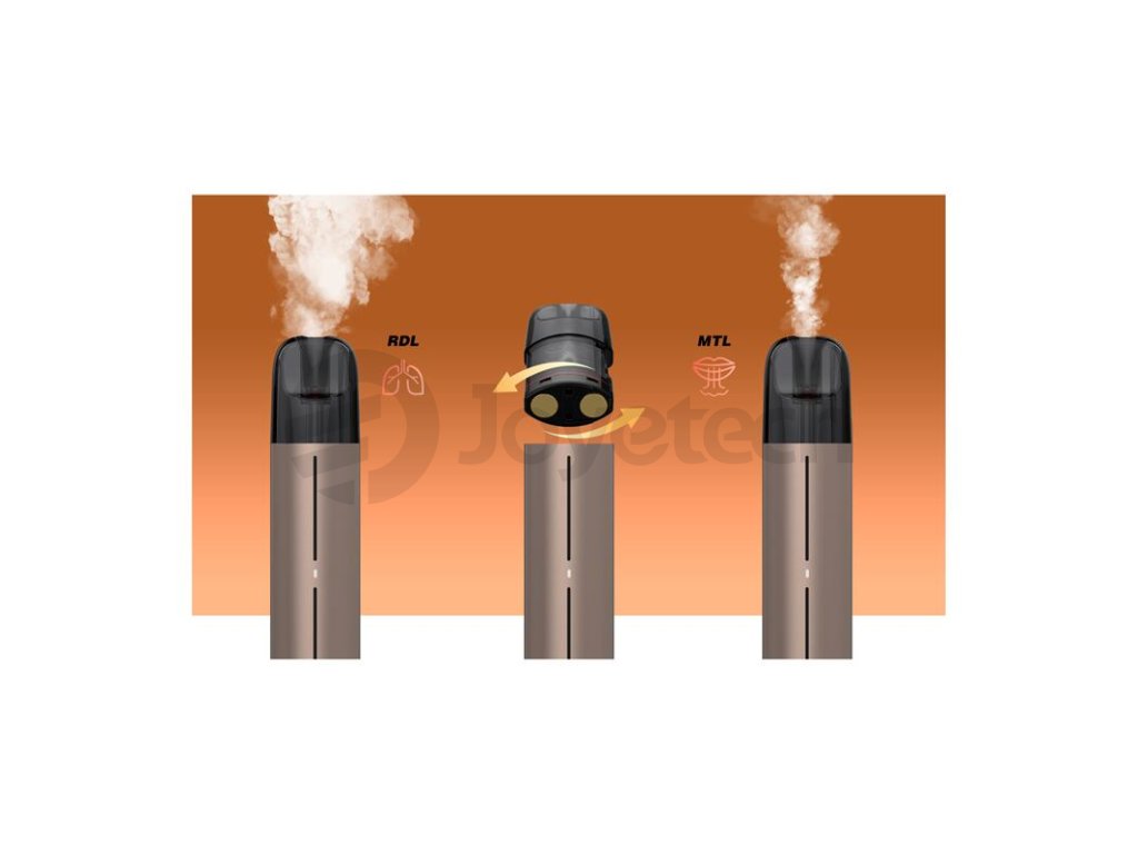 SMOK Solus 2 Pod Kit nabídne jednoduché přepnutí mezi utaženějším MTL potahem a vzdušnějším MTL vapingem podobným populárnímu RDL. Cartridge nabídne z každé strany rozdílný výkroj pro různou šířku vzduchového otvoru. Otočením cartridge na těle tak můžete jednoduše vyzkoušet, zda vám bude více vyhovovat utaženější, nebo volnější potah.