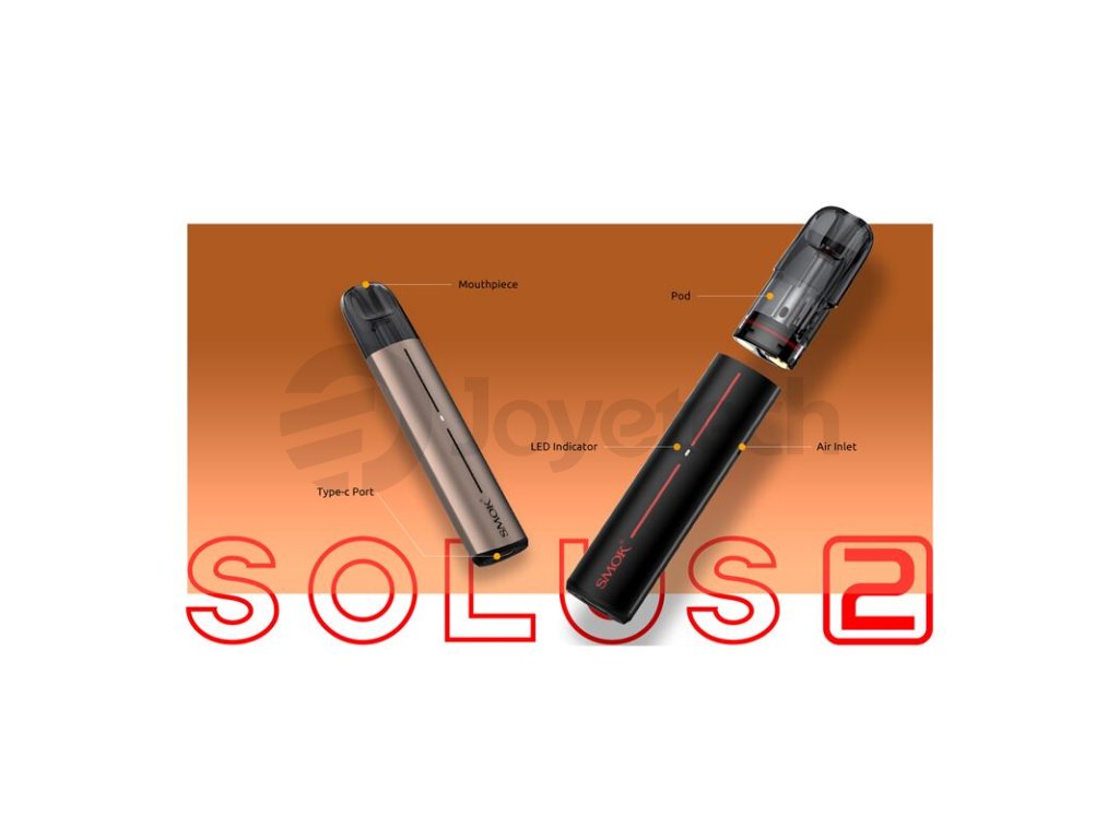 Užívejte si vynikající chuťové podání a moderní design s novým modelem Solus 2 Pod Kit z dílny výrobce SMOK. Praktický pod systém SMOK Solus 2 zaujme zejména lehkou a ergonomickou konstrukcí, oblíbenými funkčními prvky pod systémů a skvělou produkcí páry ve spojení se solidní kapacitou baterie. Celé tělo modelu je vyrobeno z lehké hliníkové slitiny, přičemž celková hmotnost činí jen 32.5 g. Nabídne tradiční design s rozměry 107 x 21.5 x 13 mm pro pohodlné držení v dlani během každodenního potahování. Přímo na těle se potom nenachází jakékoliv tlačítko, provoz je čistě automatický, e-cigareta si tak nastaví potřebný výkon dle odporu cartridge a žhavení probíhá automaticky po potažení z náustku.