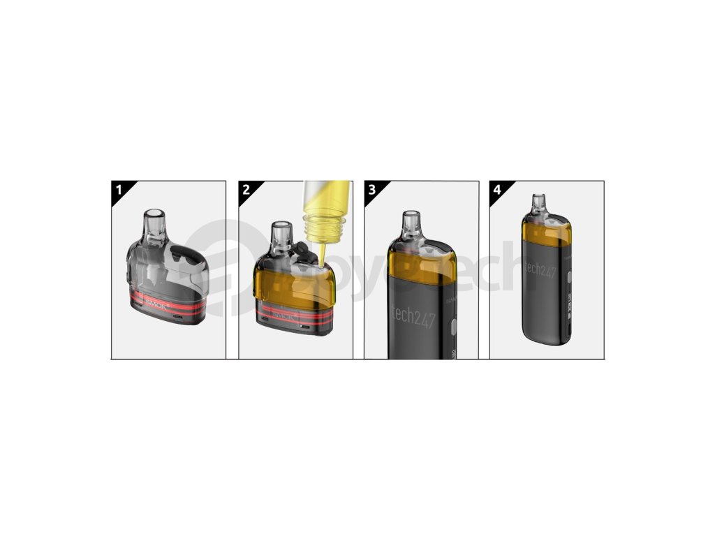 Už žádné starosti s pracným odpojováním cartridge pro potřeby naplnění. U modelu Tech247 budete moci cartridge plnit přímo na těle baterie bez jejího odpojování. V horní části cartridge se nachází praktická silikonová záslepka, stačí ji jen odklopit a začít plnit. I přes velký objem cartridge 4ml ji zvládnete doplnit doslova za pár vteřin.