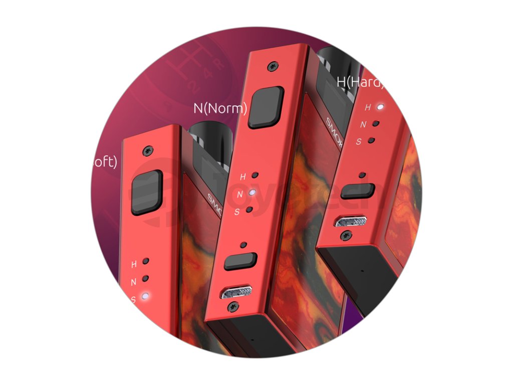 Díky volbě jedné ze tří intenzit žhavení dosáhnete mnohem lepších výsledků, než kdykoliv předtím. Slabší e-kuřáci si mohou navolit intenzitu Soft pro mírnější verzi potahu. Většina běžných uživatelů ocení intenzitu Norm. A pro náročné uživatele, kteří očekávají vyšší produkci páry při MTL potahu je připravena intenzita Hard. Výběr je tak čistě na vás a můžete si potah přizpůsobit plně přesně vašim představám.