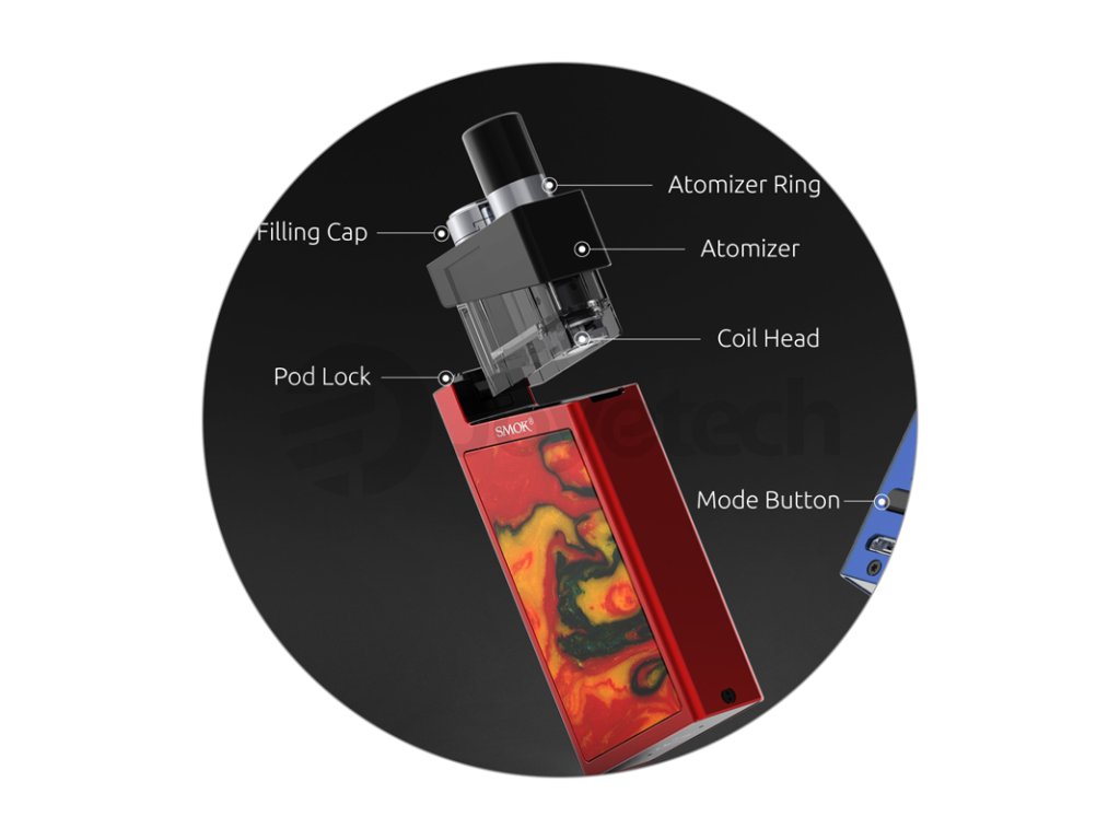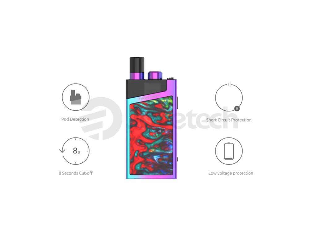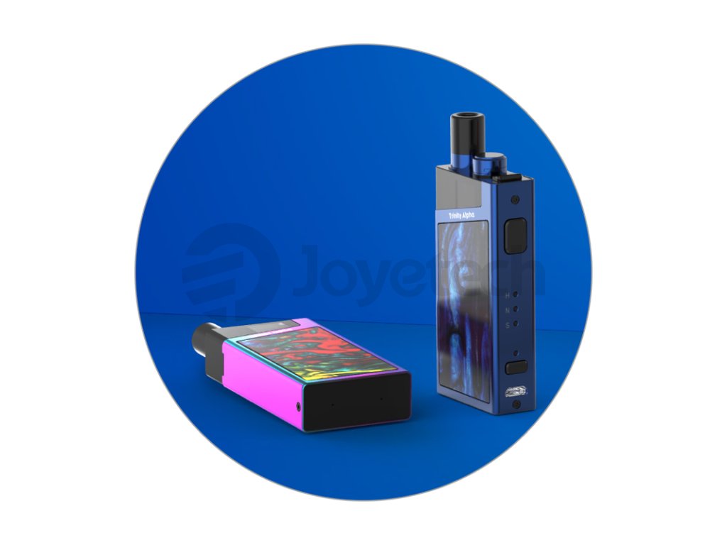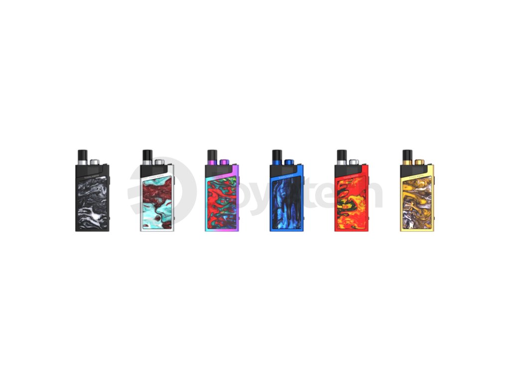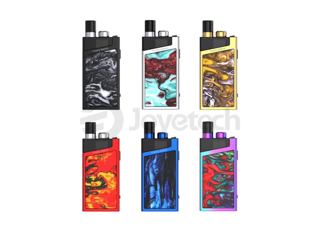 SMOK Trinity Alpha Resin Pod Kit je elegantní elektronická cigareta, která se hodí jak pro každodenní vaping, tak také do společnosti. Stylové resinové boční panely příjemně dotváří celkový dojem a výsledek je naprosto úchvatný. Díky praktickým rozměrům navíc skvěle padne do každé ruky a příjemně se z ní vapuje. Rozměry činí jen 91 x 38 x 16 mm.
