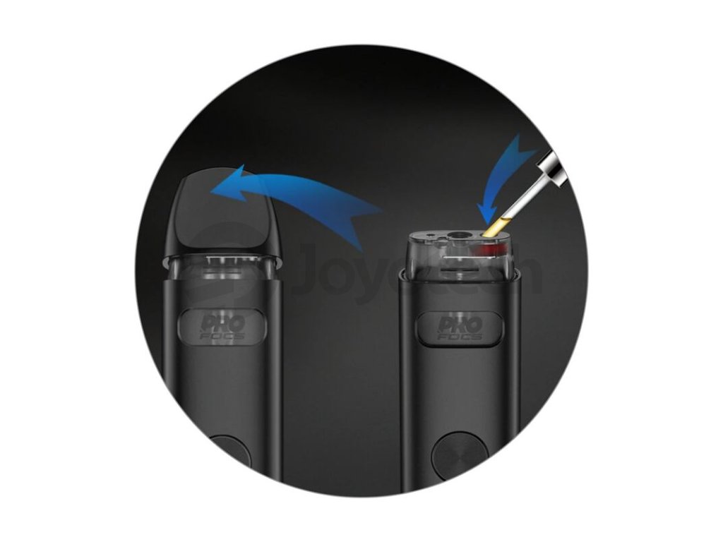 Cartridge ve vrchní části nabídne objem 2 ml. Její nespornou výhodou je potom jednoduchý mechanismus plnění. Jednoduše postačí odklopit náustek ve vrchní části a začít ihned plnit. Celý proces plnění zabere jen pár vteřin a cartridge nebudete muset během plnění ani odpojovat od těla baterie. S touto metodou si můžete e-cigaretu bez problému doplnit kdekoliv a kdykoliv.