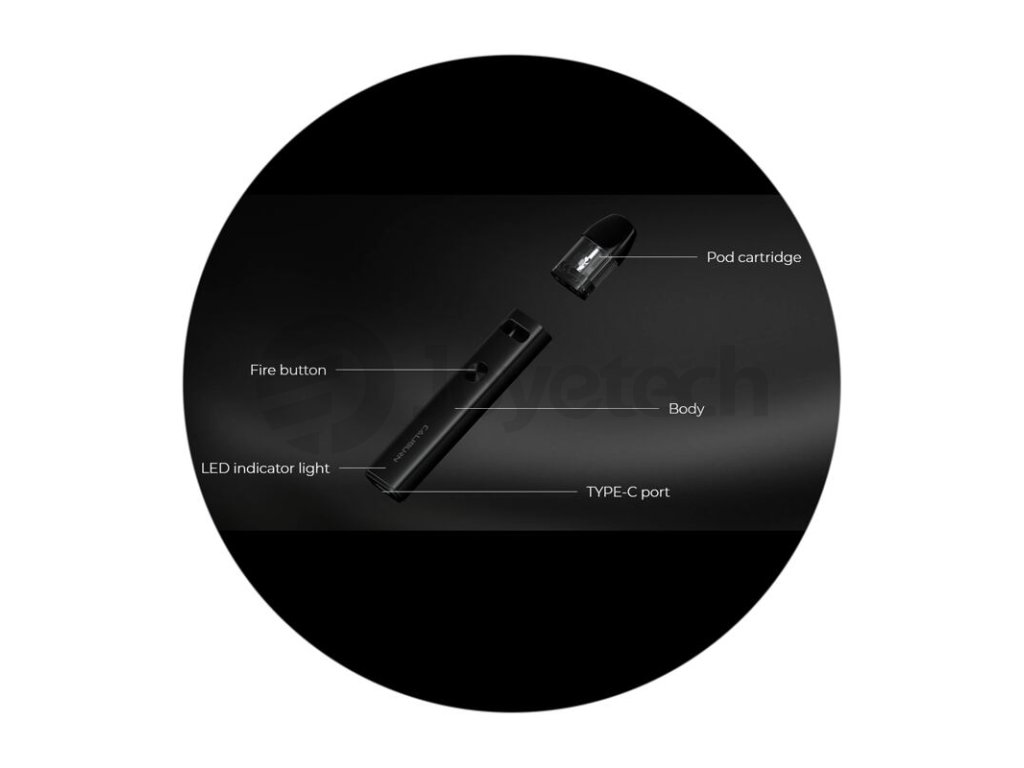 Uvnitř kompaktního těla Caliburn A2 se nachází integrovaná baterie se solidní kapacitou 520 mAh. Ta se postará o bezproblémový chod celého zařízení. Samozřejmostí je také celá řada bezpečnostních ochran baterie a cartridge pro pohodový a bezpečný provoz. Baterii budete moci dobíjet pomocí portu USB-C ve spodní části.