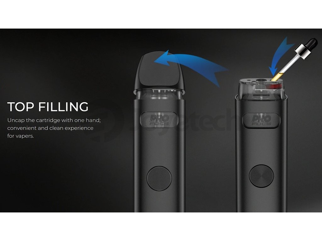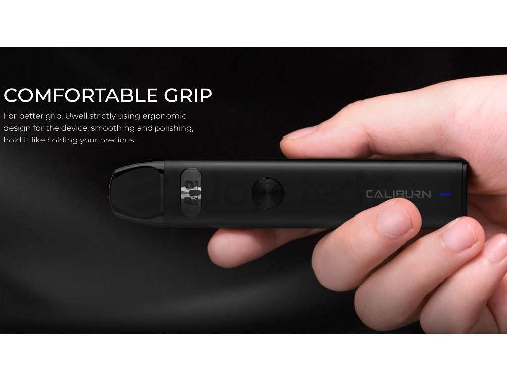 Pod elektronická cigareta vhodná pro MTL styl vapování s celkovým výkonem 15W, cartridge s objemem 2ml a Mesh žhavící hlavou s technologii kvality chuti Pro-FOCS s celkovým odporem 0,9ohm, vestavná baterie s kapacitou 520mAh, USB-C nabíjení, tělo z hliníkové slitiny, rozměry 110 x 21,3 x 11,7 mm. Možnost automatické i manuální aktivace potahu. Opakovaně plnitelná Pod Cartridge Caliburn A2.