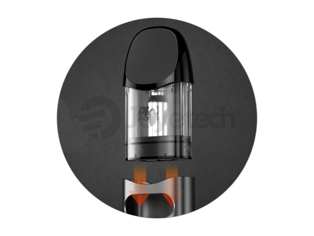Cartridge u modelu Caliburn A3 Pod Kit disponuje základním objemem 2 ml, jednou za čas bude nutné tuto cartridge opětovně doplnit. K tomuto účelu skvěle poslouží intuitivní vrchní plnění. Postačí jen sejmout náustek a během pár vteřin doplnit e-liquid zpět. Pro naplnění ani nebudete potřebovat cartridge odpojovat od e-cigarety, jen odejmete náustek a plníte.