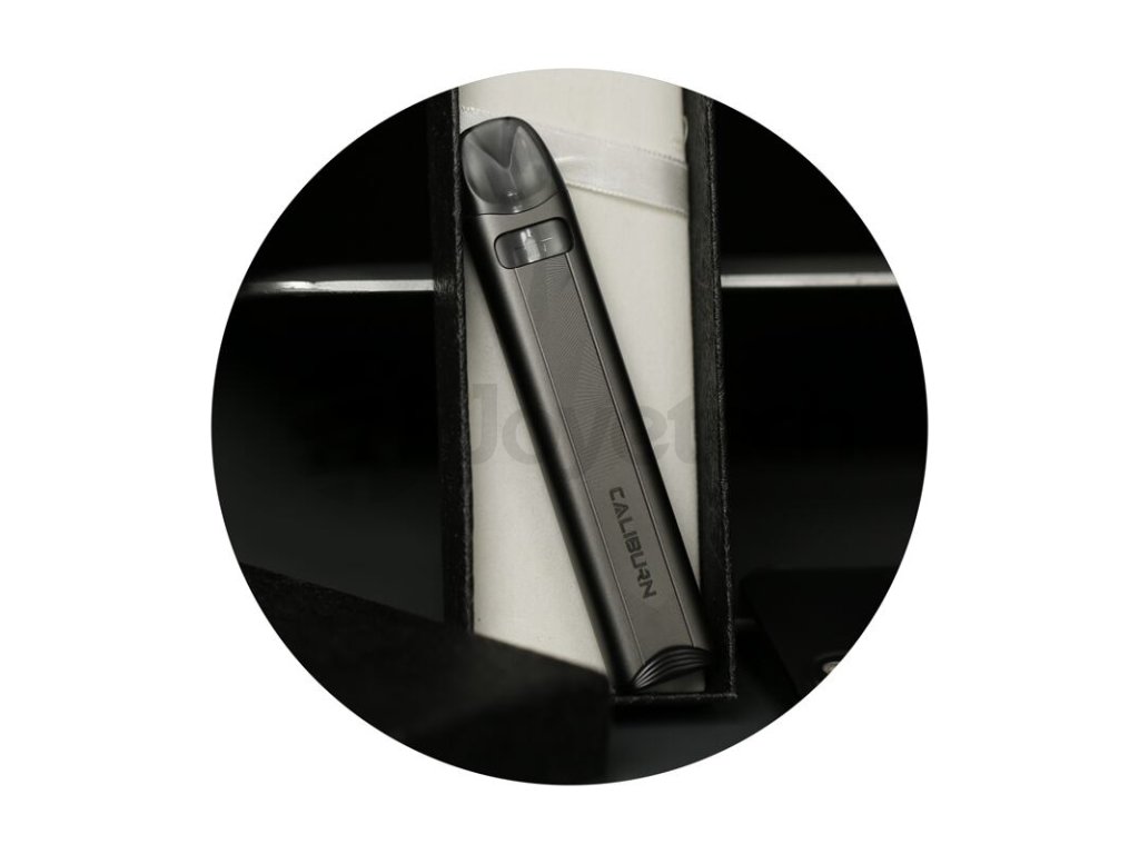 Tradiční design všech modelů ze série Caliburn je skutečně nadčasový. Těšit se tak můžete na podlouhlé tělo s kompaktními rozměry, které činí jen 109.8 x 21.3 x 11.7 mm. Díky vybroušeným hranám se zařízení také perfektně drží v dlani během každodenního používání. Tělo je vyrobeno z lehoučké hliníkové slitiny, díky čemuž se celková hmotnost zastavila na krásných 32,6 g.